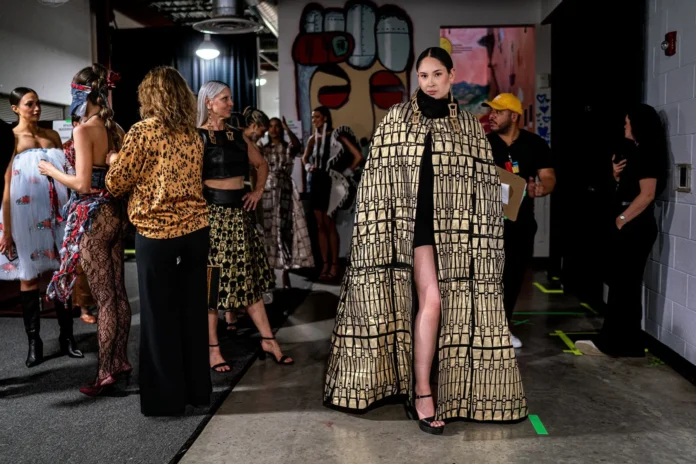 Penny Singer, a Navajo designer known for her vivid textiles, delivered bold ribbon shirts and jackets adorned with vibrant applique—a fresh twist on her heritage. Meanwhile, Ayimach Horizons, Alex Vigil Apparel, and Emme Studio showcased experimental silhouettes that toyed with proportion, texture, and futuristic flair, all while staying rooted in cultural symbolism.
